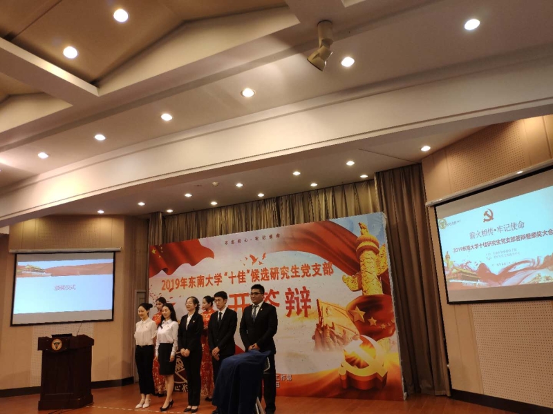 beat365正版唯一官方网站研究生十佳党支部评选两年开展一次。首先,由党委研究生工作部评优小组对每一份申报材料进行初评,约15个左右候选支部进入公开答辩环节。在答辩环节由多位来自南京各高校的老师担任教师评委,来自全校各院系的非候选党支部的支部书记代表担任学生评委,现场共同听取候选支部的5分钟展示,提问2分钟,并查阅申请支部的党建材料。候选党支部根据抽签顺序依次登台答辩。在答辩环节中,各候选党支部围绕支部建设、党日活动开展、学术成果与先锋模范作用发挥等方面进行集中展示。各支部积极培育和践行社会主义核心价值观,传递青春正能量;增强党员责任感与党性修养,发挥支部的战斗堡垒作用;开展各种具有学院和专业特色的党日活动,在服务同学、奉献社会中提升自我。各支部沉着应对评委老师的提问,展现了作为优秀共产党员应有的素质与临场应变能力。最后,教师评委组和学生评委组的打分成为公开答辩成绩,结合初评成绩,作为最终成绩。
