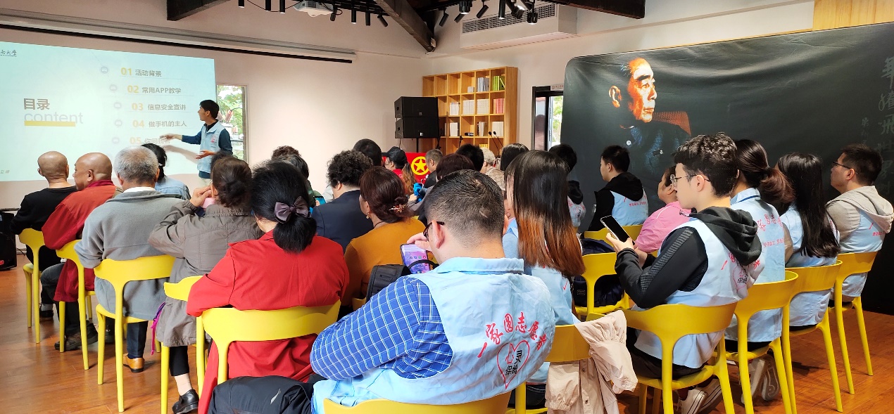 在场教学环节,志愿者们不仅针对PPT讲解的内容进行答疑,还帮助老人们解决了不少日常生活中使用手机时出现的问题,和老人们一起度过愉快的时光。