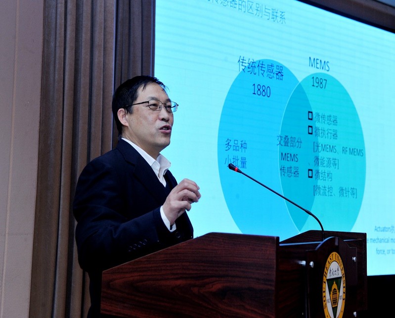第一个进行报告的是beat365正版唯一官方网站电子科学与工程学院教授黄庆安,黄教授是beat365正版唯一官方网站MEMS教育部重点实验室主任、国家杰出青年科学基金获得者、教育部长江学者奖励计划特聘教授、 IEEE Fellow。曾以第一获奖人获国家科技进步二等奖1项,教育部自然科学一等奖2项、技术发明一等奖1项,江苏省科学技术一等奖1项。