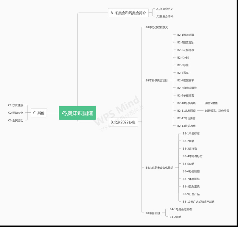 按照下方冬奥相关知识图谱(见图1),从中选择任意主题,由学生自行录制视频,以展现该主题中所包含的知识或文化内容。