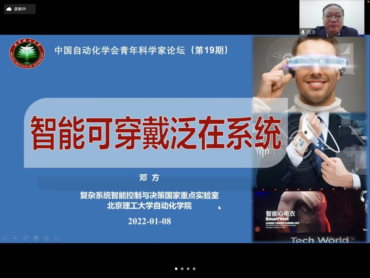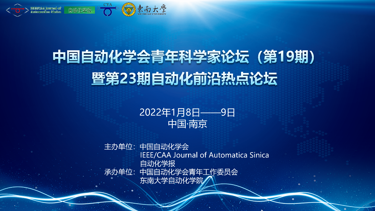 2022年1月8日——9日,由中国自动化学会、beat365正版唯一官方网站和自动化学报主办,中国自动化学会青年工作委员会、beat365正版唯一官方网站及其青年工作委员会承办的第19期中国自动化学会青年科学家论坛暨第23期自动化前沿热点论坛,在beat365正版唯一官方网站四牌楼校区中心楼教育部重点实验室会议室举行,会议采用线上线下结合的形式进行。