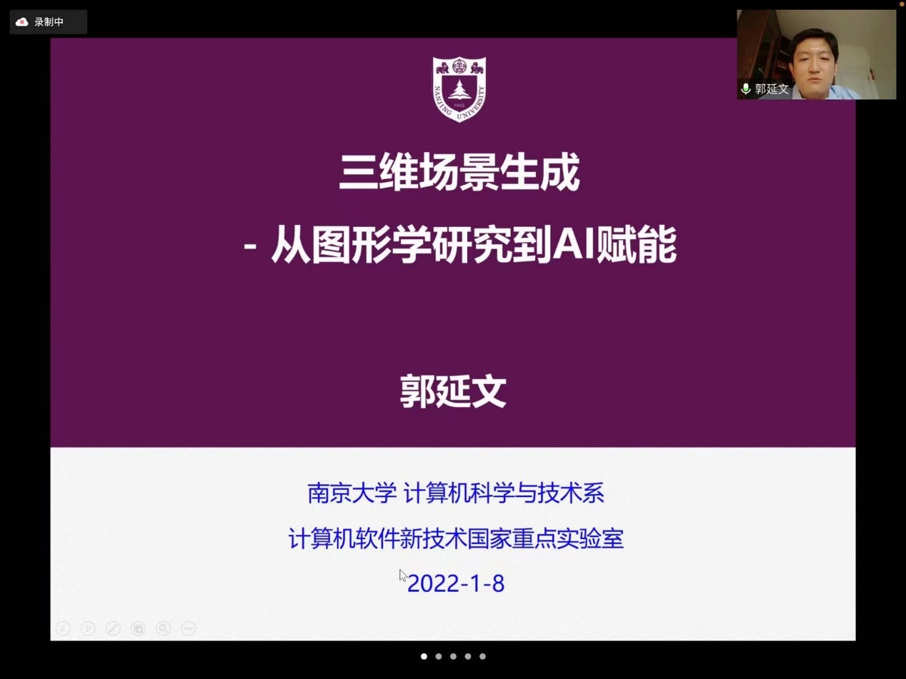 在论坛的第七场报告中,南京大学郭延文教授作了题为“重建现实世界-从计算机图形学研究到AI赋能”的报告。