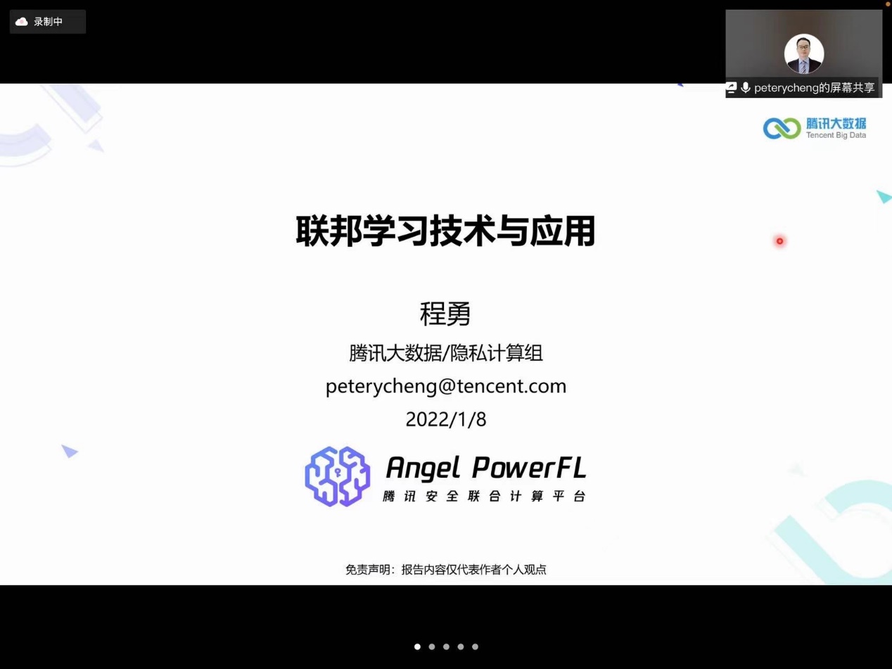 在论坛的第十场报告中,腾讯科技(深圳)有限公司程勇工程师带来题为“联邦学习技术与应用”的报告。