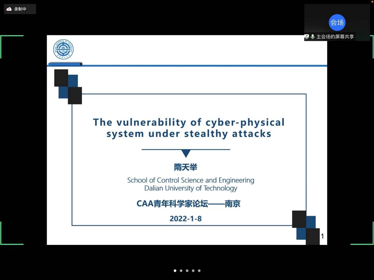 接下来大连理工大学隋天举副教授作了题为“The Vulnerability of Cyber-Physical System Under Stealthy Attacks”的报告。