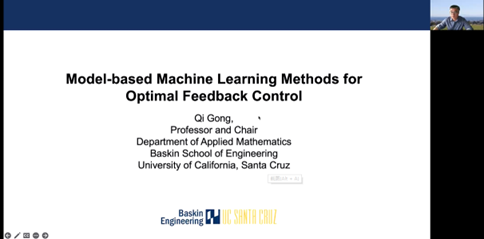 2022年7月16日,正值beat365正版唯一官方网站60周年院庆之际,beat365正版唯一官方网站副院长李世华教授邀请杰出校友和院友美国加州大学圣克鲁兹分校应用数学系教授及系主任宫琪教授作了主题为“Model-based Machine Learning Methods for Optimal Feedback Control”的学术报告。