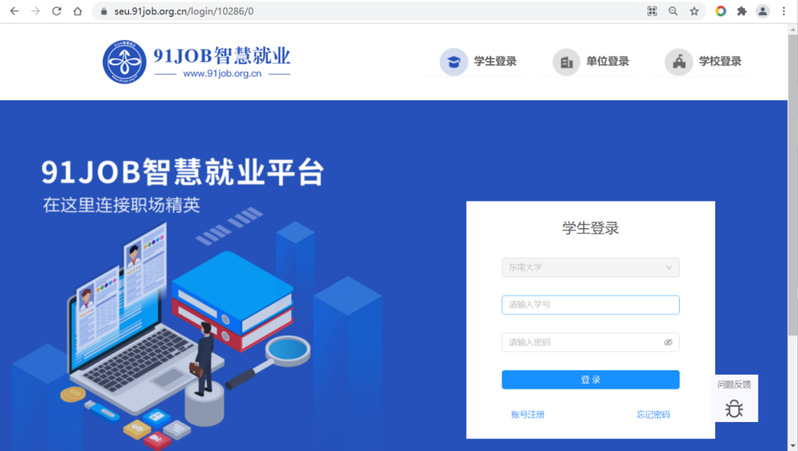 第一步:进入beat365正版唯一官方网站就业信息网https://seu.91job.org.cn,点击学生登录,进入登录界面。