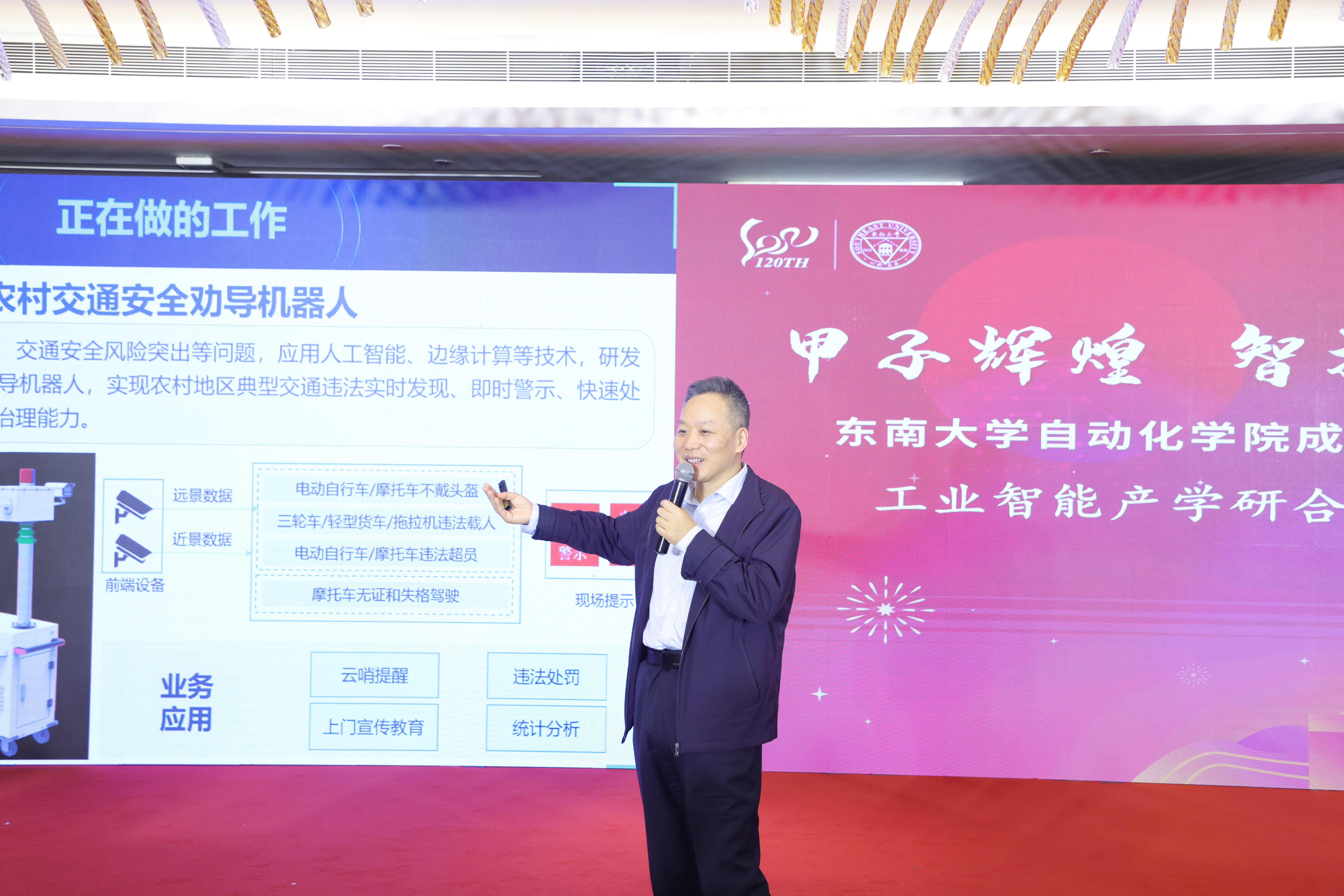 公安部交通管理科学研究所副所长蔡岗围绕严重交通违法行为智能识别技术应用,介绍了智慧高速大脑与农村交通安全劝导机器人等先进的智能交通管理技术及应用。