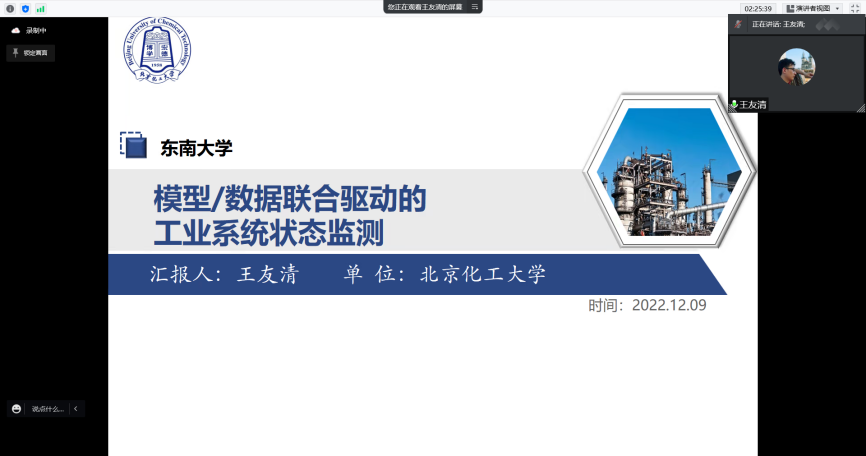 在论坛的第四场报告中,国家杰青、北京化工大学信息科学与技术学院院长王友清教授作了题为“模型/数据联合驱动的工业系统状态监测”的报告,提出同时利用机理模型和实验数据联合驱动的状态检测方法,结合课题组在二维系统故障和质量相关多元统计方面的最新研究成果展示了广阔的应用前景。
