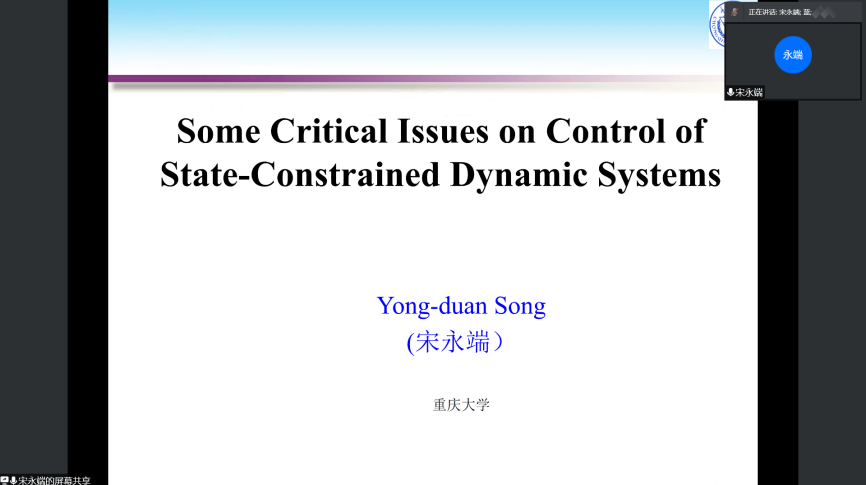 在论坛的第一场报告中,国家高层次专家、重庆大学人工智能研究院院长宋永端教授作了题为“Control of Nonlinear Dynamic Systems under Various Constraints”的报告,总结了目前非线性系统在应用中需要考虑的各种约束,介绍了受约束系统典型的控制设计方法以及近期的发展情况,并重点指出了几个未来潜在的研究方向。