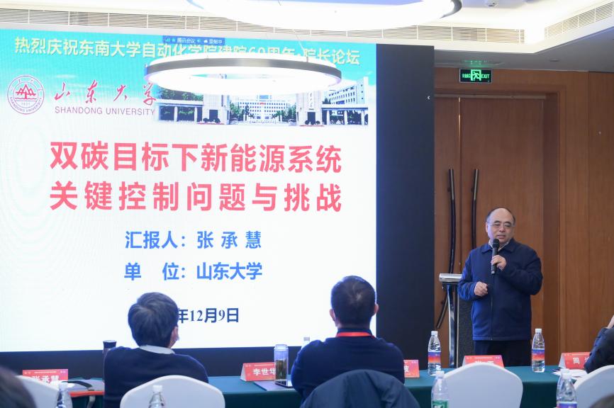 随后,国家级高层次人才、山东大学控制科学与工程学院院长张承慧教授介绍了“双碳目标下新能源系统关键控制问题与挑战”,探究了四个相关方面的关键技术,结合其团队研制的光伏逆变器和电能净化两类新能源并网控制装备及生物质冷热电联供系统与多能流智慧管理系统作了详细介绍。