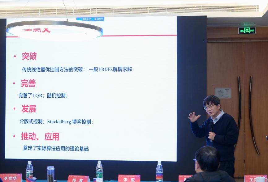 在论坛的最后一场报告中,国家杰青山东科技大学电气与自动化工程学院院长、山东大学张焕水教授讨论了“线性最优控制的挑战、进展及应用”,回顾了LQ控制的发展与挑战,探究了问题的机理,提出了系列基本问题的解决方法,包括非正则LQ控制、时滞系统随机控制、分散控制等。