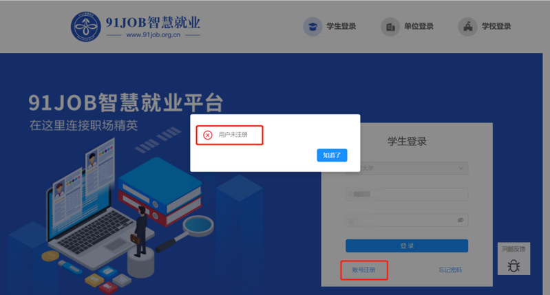 第一步:进入beat365正版唯一官方网站就业信息网https://seu.91job.org.cn,点击学生登录,进入登录界面。