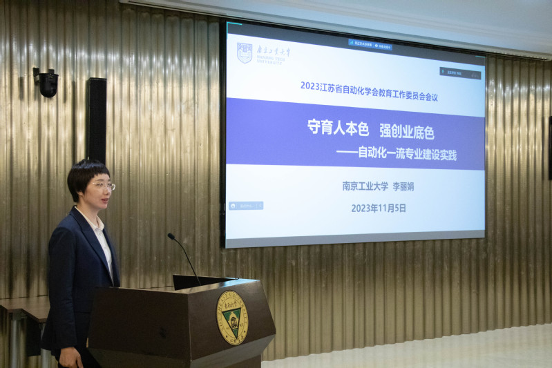 南京工业大学李丽娟教授以“守育人本色,强创业底色”为题,详细介绍了南京工业大学自动化专业的建设实践,包括多元主体融合的课程思政改革模式、课内外创新创业体系平台和教育机制、三真三新六进的引企入校产教融合新型模式。