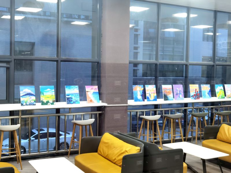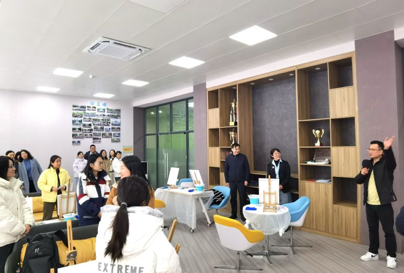 许多老师都是第一次接触丙烯画,可是老师们的悟性和作品,让前来观摩的其他老师们也不停赞叹“太有天赋”“画得太赞了”,而老师们自己也纷纷表示这次活动开启了她们艺术兴趣的新大门,有些老师认为绘画过程非常解压,以后找到了疏解压力的好方法。