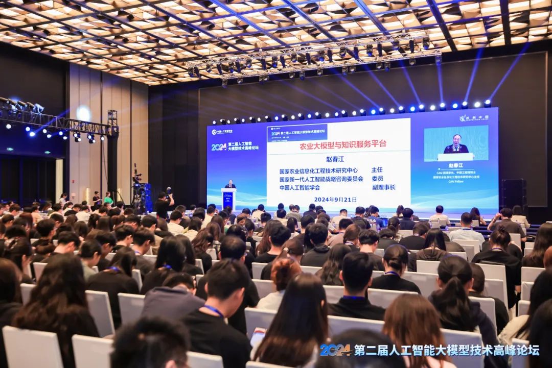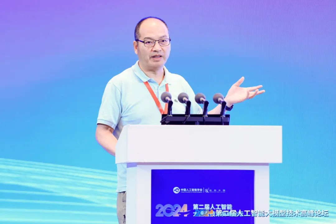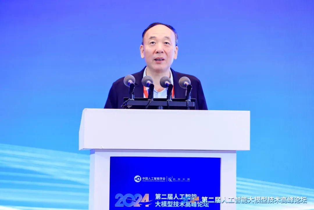 主论坛报告环节,CAAI副理事长、中国工程院院士赵春江,百度首席技术官王海峰,腾讯首席科学家张正友,中国科学院自动化研究所研究员宗成庆分别作学术报告,围绕大模型的基础研究、技术前沿、产业态势进行探讨,为未来的跨学科研究和各行业落地应用提供新思维。