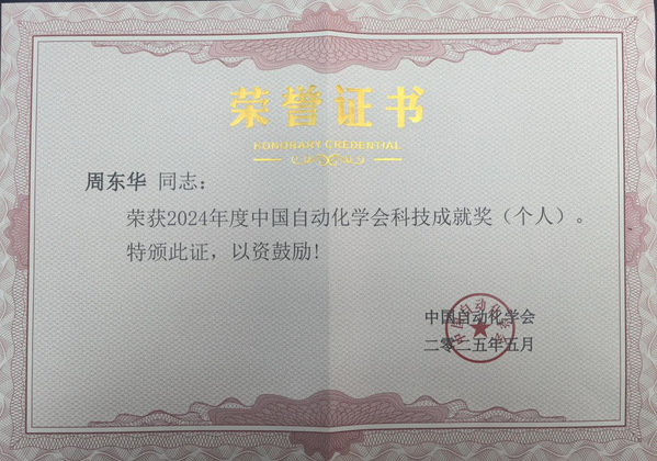 周东华教授凭借其在动态系统故障诊断与容错控制、运行安全性评估理论等领域做出的重大贡献,荣获2024中国自动化学会科技成就奖(个人)。中国自动化学会科技成就奖旨在奖励在自动化、信息与智能科学领域科学研究中有重大发现,取得重大进展,或在关键核心技术研发及创新中取得重大突破,在工程实践和科技成果转化中取得重大成果,或在科学普及事业中有重大贡献,显著推动学科发展和社会进步,取得重大经济或社会效益的个人和团队。2位个人和5个创新团队荣获2024年度中国自动化学会科技成就奖。