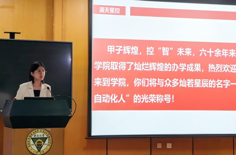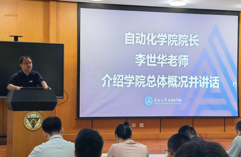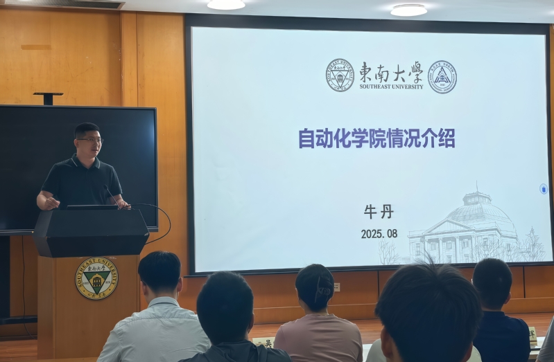 副院长牛丹向新生详解学院概况、架构及自动化系、机器人工程系的成绩成果,更巧妙引出学院与“8”的特殊缘分——我院既是东大建校第八系,在全球控制科学领域亦稳居第八,有着深厚学科底蕴与强劲综合实力。身为分管研究生工作的副院长,他同步开展入学培训,推介学院公众号、官网等新媒体平台,并就研究生学习、工作、生活给出具体建议,让新生快速了解学院、融入新环境。