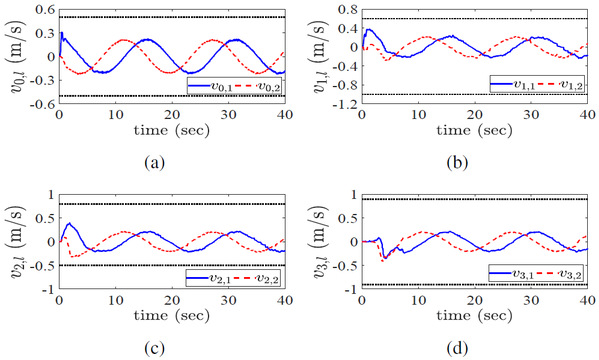 各移动机器人实际速度响应曲线(均满足各自约束条件)