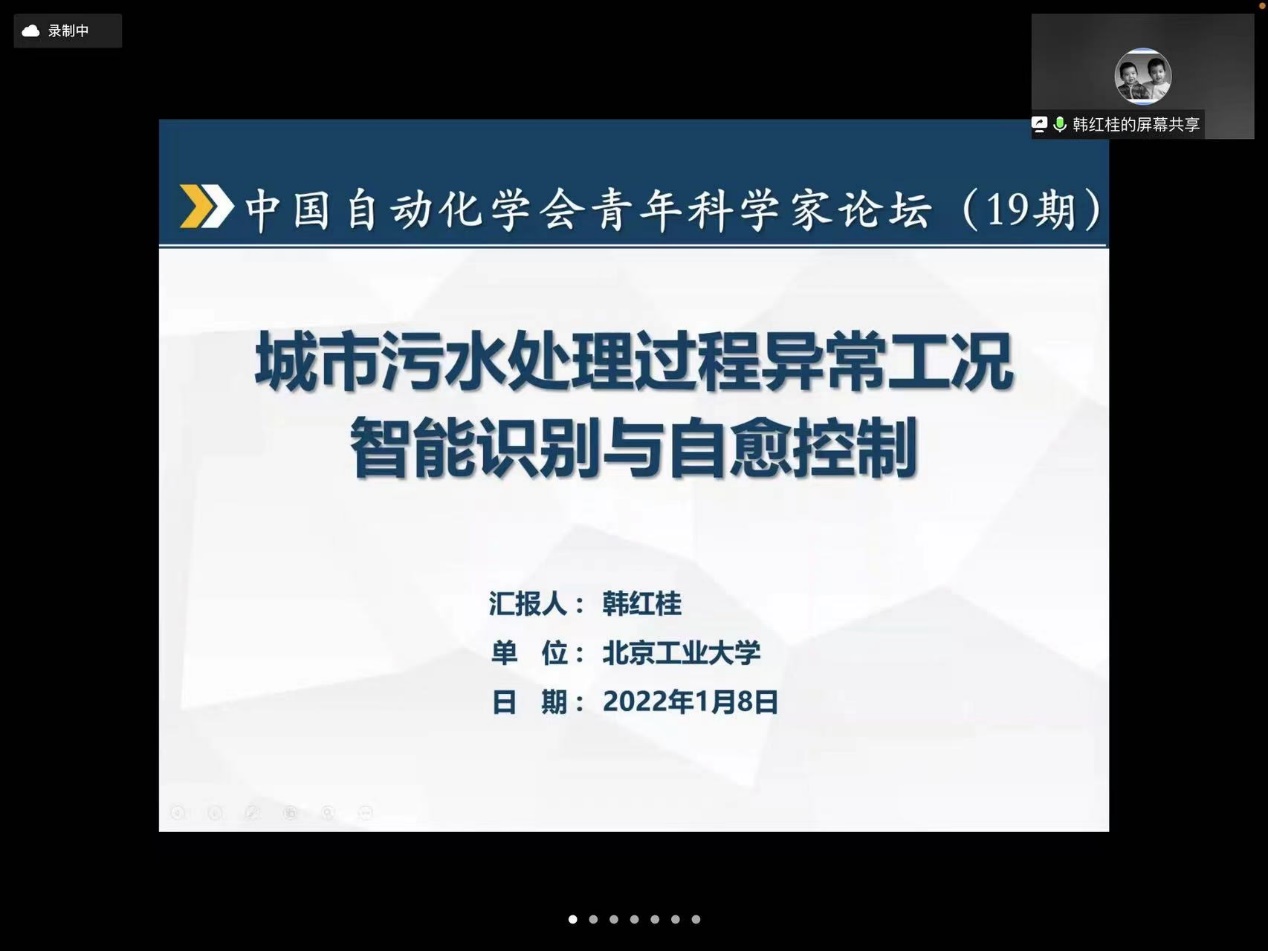在论坛的第四场报告中,北京工业大学韩红桂教授作了题为“城市污水处理过程异常工况智能识别与自愈控制”的报告。