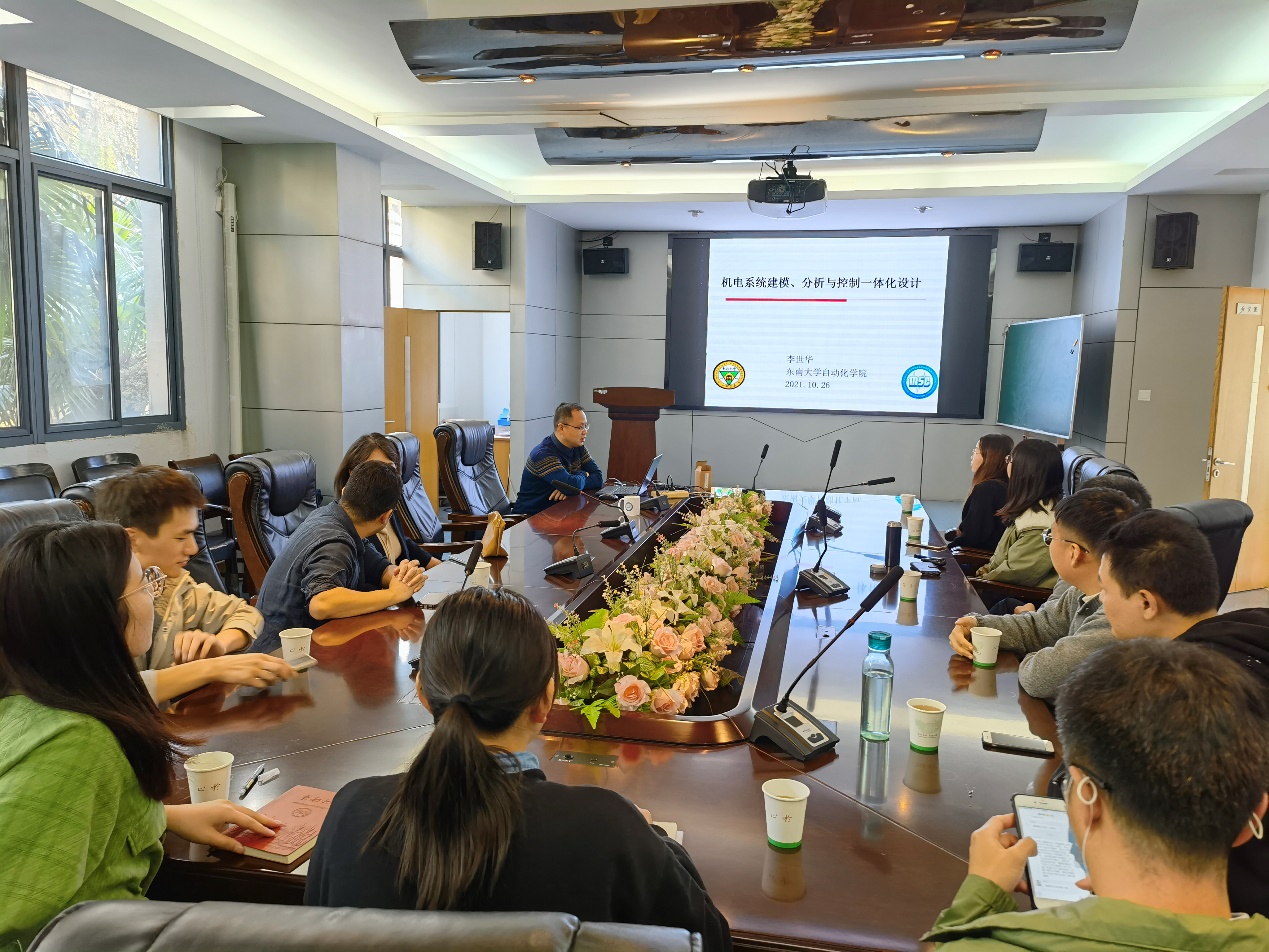 本次沙龙以机器人系统控制为主题,邀请了三位教师进行线下交流。首先,李世华教授做了题为“机电系统建模、分析与控制一体化设计”的学术报告,详细介绍了抗干扰控制理论及其在机电系统分析与控制中的应用。随后,杨万扣教授做了题为“基于深度学习的目标检测”的学术报告,对课题组在目标检测与跟踪方面的突出成果进行了总结和分享。最后,刘剑博士后以“固定时间自主无人系统事件触发协同控制”为主题进行了学术报告,介绍了自己在自主无人系统协同控制领域的理论研究和实验系统开发工作。